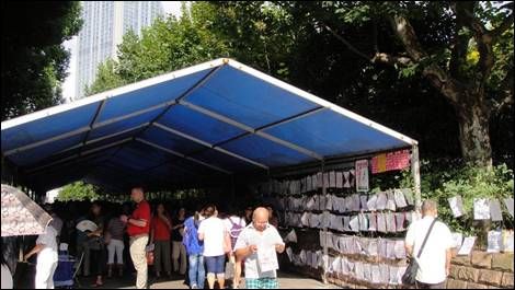 الجميع يبدون في حيرة من أمرهم و الوجوه يبدو عليها الجدية و الاهتمام و لكننا لم نعرف السبب، فقال رفيقي: ربما يكون هذا سوق لعرض الخدمات أو البحث عن عمل أو تبادل المعلومات. و لكننا لم نصل إلى معرفة الحقيقة بسبب حاجز اللغة، و عند عودتنا إلى الحديقة عند الظهيرة لتناول بعض الطعام وجدنا الحشد قد زاد، سألنا بعضهم إن كان يتحدث الانجليزية، فلم ننجح.